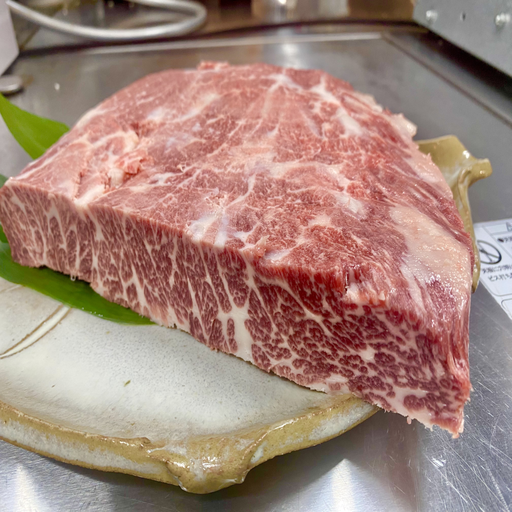 霜降り馬刺しの中でも希少部位。霜降りの状態は極めて細かい。肉の目が斜めに入ることから、肉の塊の表面に全ての霜降りが見えるようになる 1パック約100g/真空パック冷凍しています。