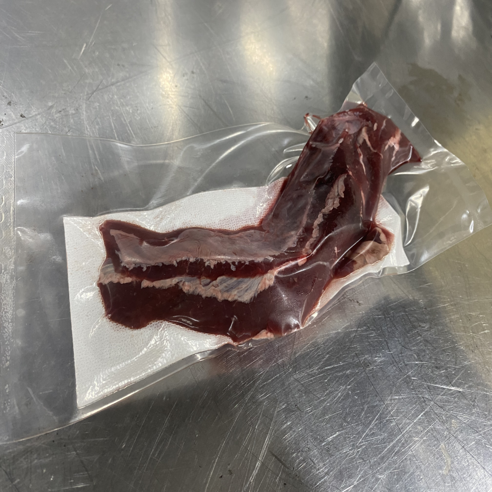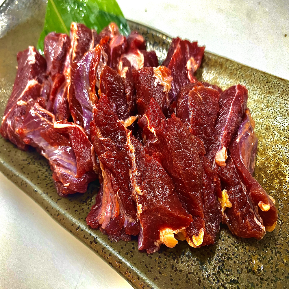 骨と骨の間のアバラ肉です。 独特の歯ごたえで噛めば噛むほど肉汁が口の中に広がります。 刺身でも勿論美味しいですが、焼きにするとまた違った食感を楽しめます。 1パック約100g/真空パック冷凍しています。